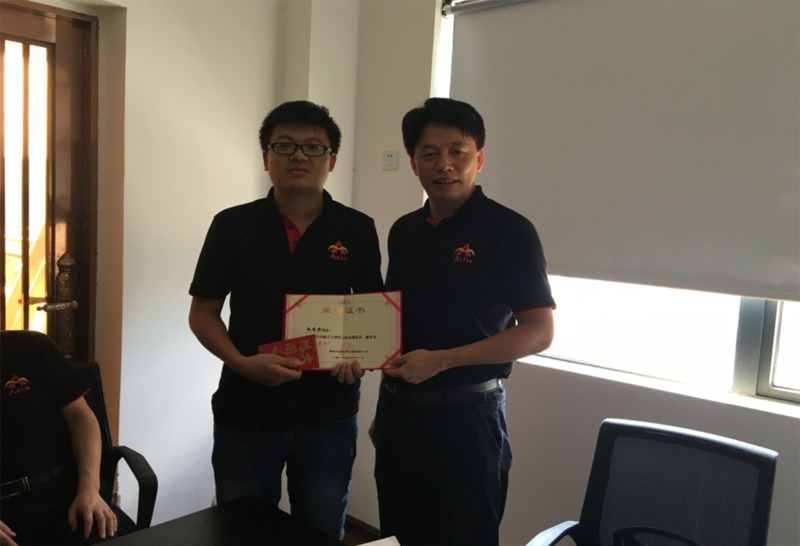 2016年8月,公司成立十周年,黃志敢總經(jīng)理向獲得年度優(yōu)秀員工頒獎